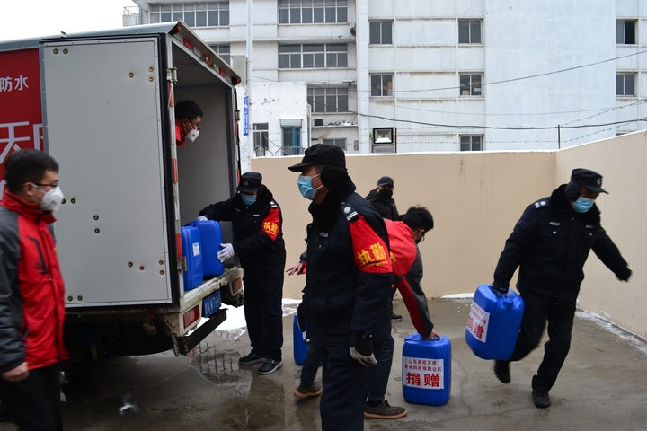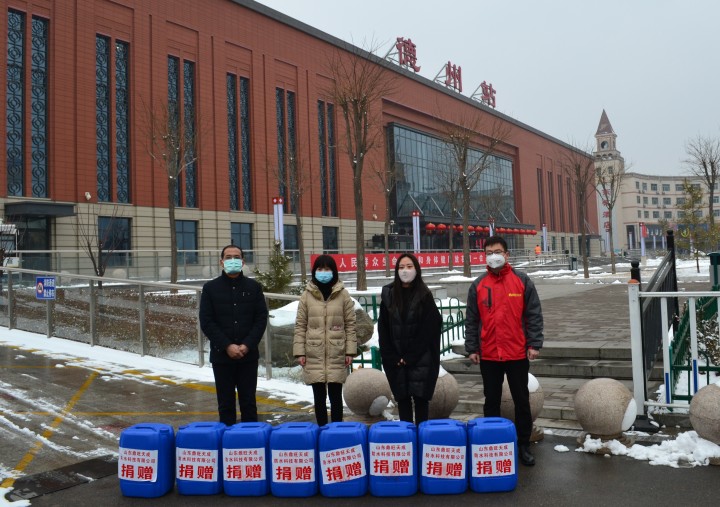 2月6日,德州市慈善义工联合会联合山东鼎旺天成防水科技有限公司,向火车站广场管理中心捐赠了500公斤消毒液,助力站前广场疫情防控工作。