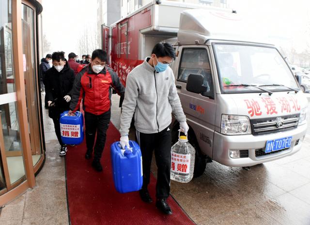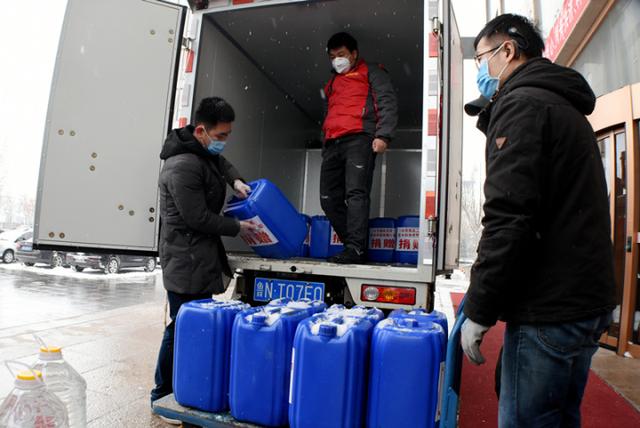 山东鼎旺天成防水科技有限公司董事长宋华杰说,12吨消毒液和酒精有7吨捐给德州,5吨捐给武汉。当天上午,桂大智和宋华杰带着消毒液和酒精来到德州市民政事业园、德州晚报社、德州日报社、德州广播电视台等单位,将消毒液和酒精送到工作人员手中。下一步,这些消毒液和酒精还要送到乐陵市、临邑县、夏津县、交警部门、赵虎镇、车站广场管理办公室等多个部门和单位,为抗击疫情贡献一份力量。